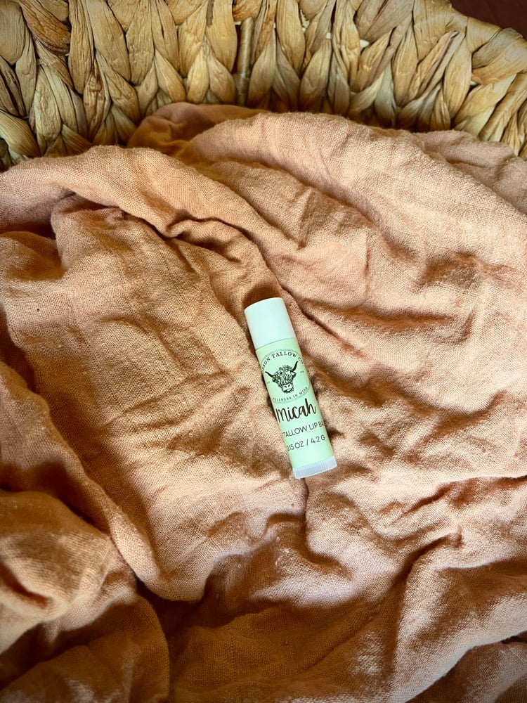 Crafted with grass-fed tallow, beeswax, and cooling mint essential oil, Micah delivers deep hydration while protecting your lips from dryness and the elements. The rich tallow restores softness, beeswax locks in moisture, and mint offers a refreshing finish that feels clean and uplifting.